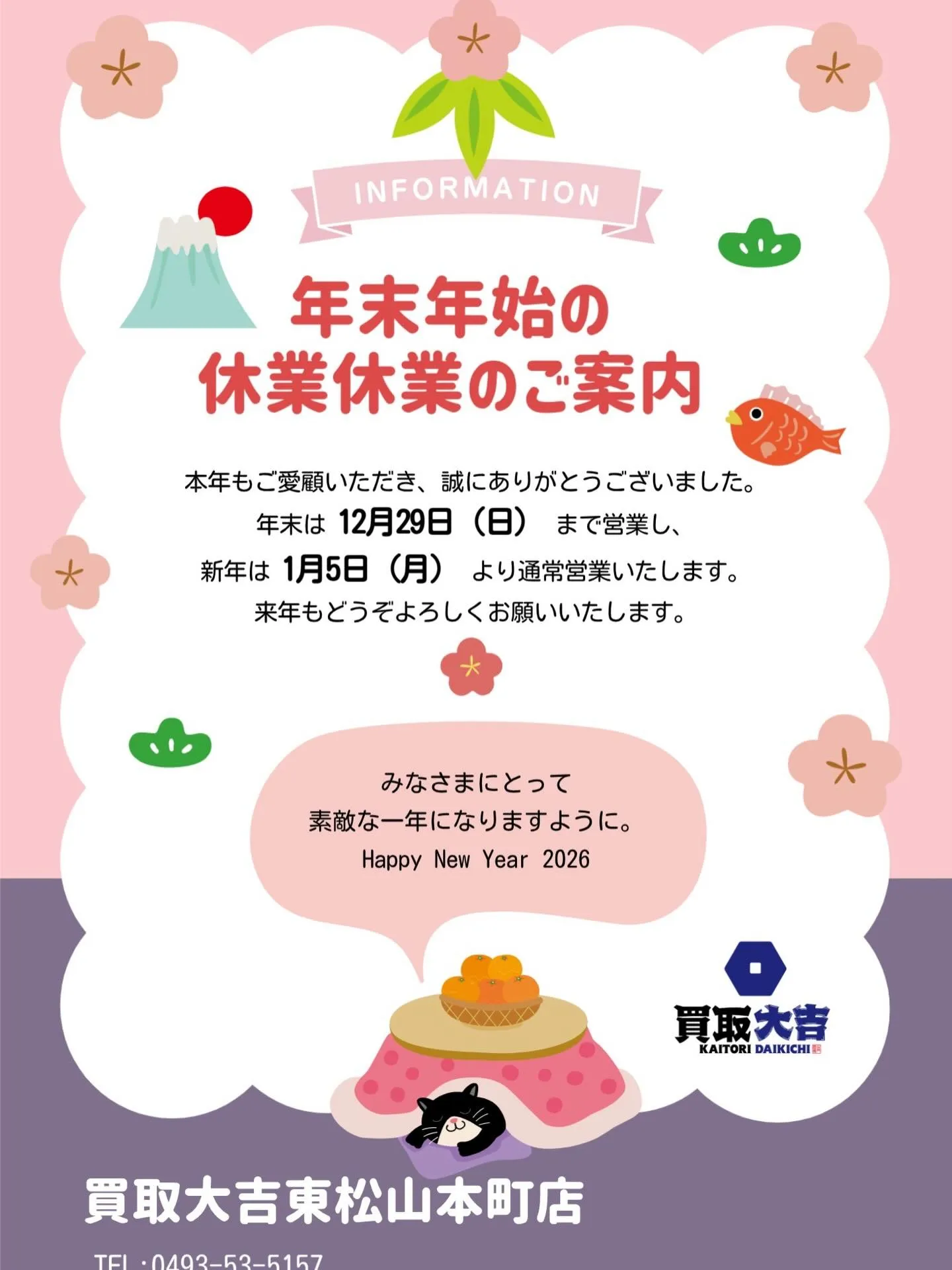 年末年始の休業のお知らせ⛩️